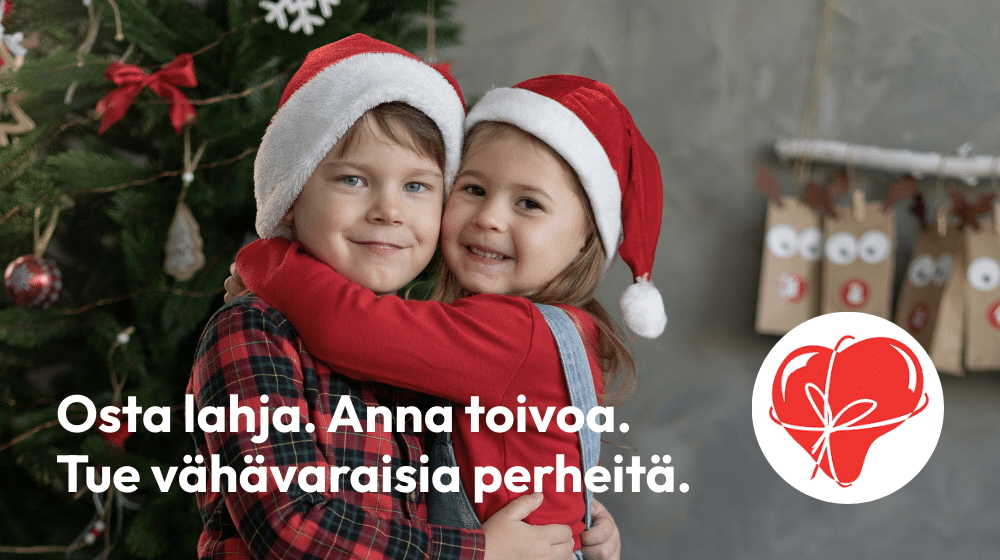 Osta joululahjoja tai muuta arjen hyötytavaraa itselle tai läheisille - tuet samalla vähävaraisten perheiden joulua. Hyvä Joulumieli -keräyksen järjestävät Mannerheimin Lastensuojeluliitto ja Suomen Punainen Risti yhdessä Ylen kanssa. Hyvä Joulumieli -keräys järjestetään vuonna 2025 jo 29. kertaa. Vuoden 2025 kokonaiskeräystavoite on noin 1,2 miljoonaa euroa, jonka avulla jaetaan 70 euron arvoisia ruokalahjakortteja 18 000 perheelle Suomessa. Tuetiimiä.fi yhdessä Hyvän Tekijä -yritysten kanssa haluaa kerätä vähävaraisille lapsiperheille 500€ potin. Nyt sinulla on loistava mahdollisuus osallistua keräykseen: Osta joululahjoja, niin Tuetiimiä.fi ohjaa reilun osan tuotteiden hinnasta Hyvä Joulumieli -keräykseen.