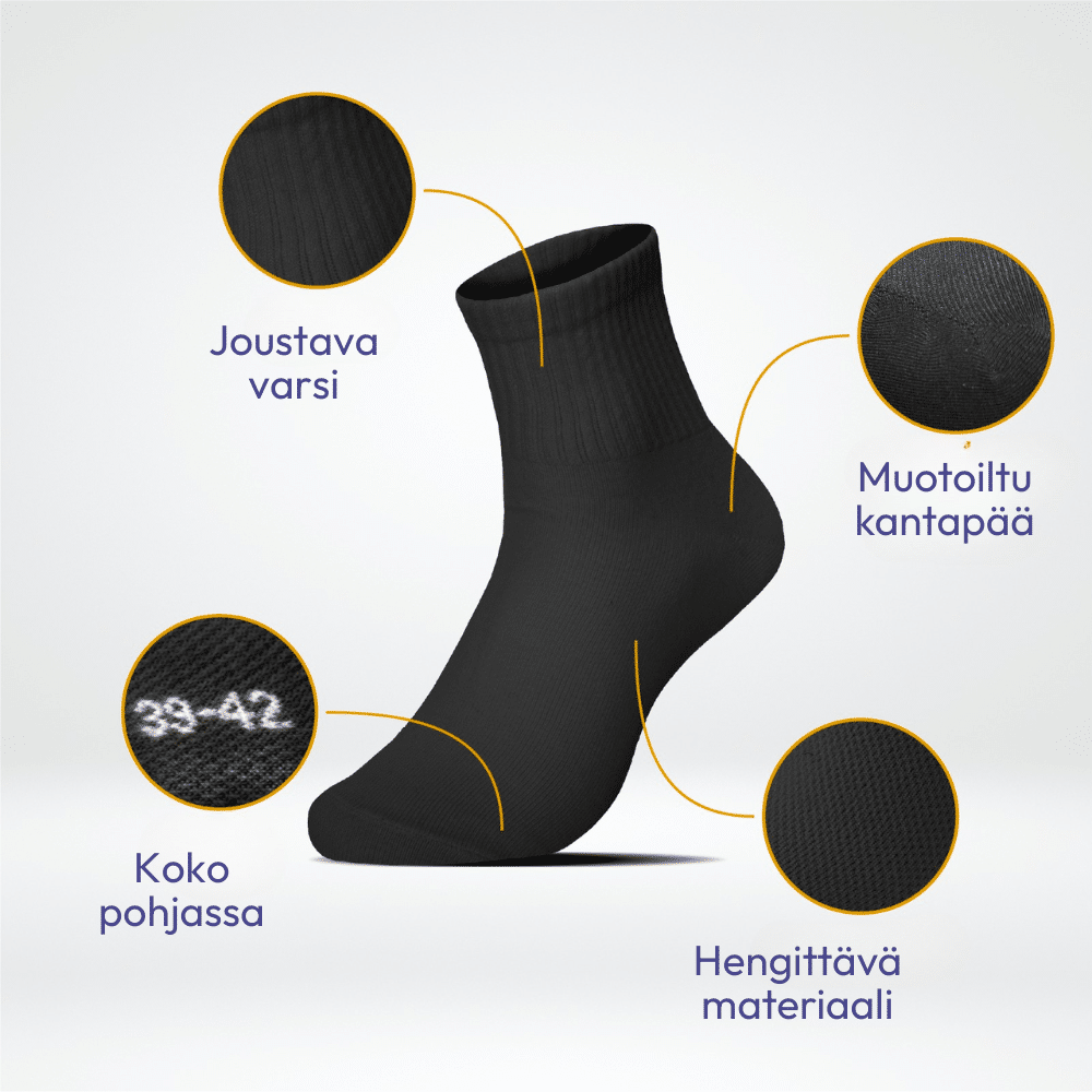 Unisex Premium -urheilusukat – hengittävyys, tuki & koko päivän mukavuus!