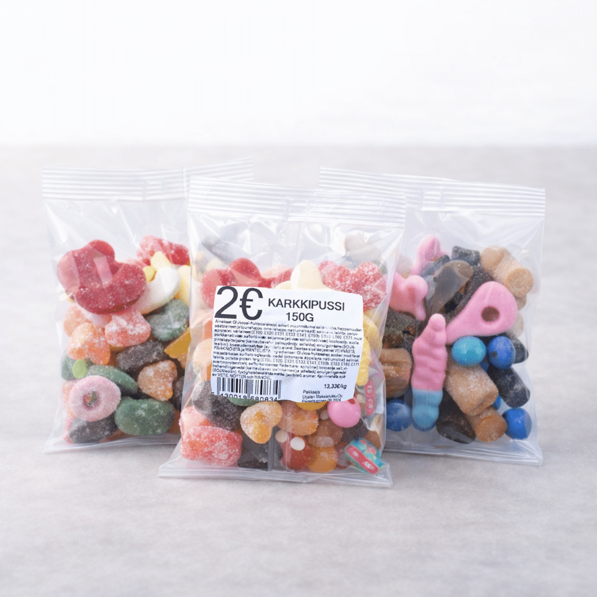 Tilaa tästä kolme 150g karkkipussia itselle tai jaettavaksi, yhteensä 450g karkkia.
