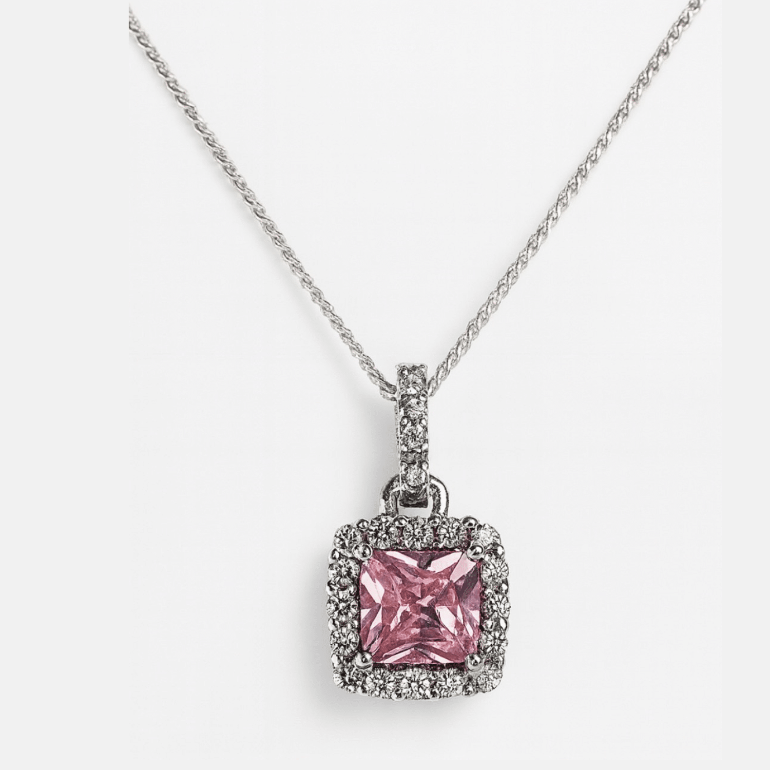 Tämä rodinoidusta 925-hopeasta valmistettu CK Silver -kaulakoru ihastuttaa ylellisen säihkyvällä keskikivellään, jonka ympärillä kimaltelee kaunis zirkoniareunus. Valitse suosikkisi kahdesta upeasta väristä: herkkä pinkki tai raikas turkoosi – molemmat sopivat täydellisesti niin arkeen kuin juhlaan.