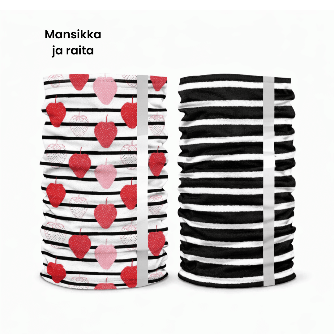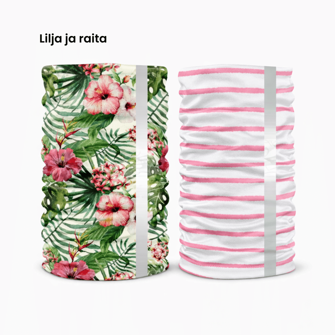 Materiaali on ohutta ja sopii käytettäväksi mm. pyöräilykypärän alla. Huivi on täysin saumaton. Heijastava 3cm nauha on painettu huivin molemmille etu- ja takaosaan, joten heijastava pinta on näkyvillä huolimatta siitä kuinka päin puet tuotteen.