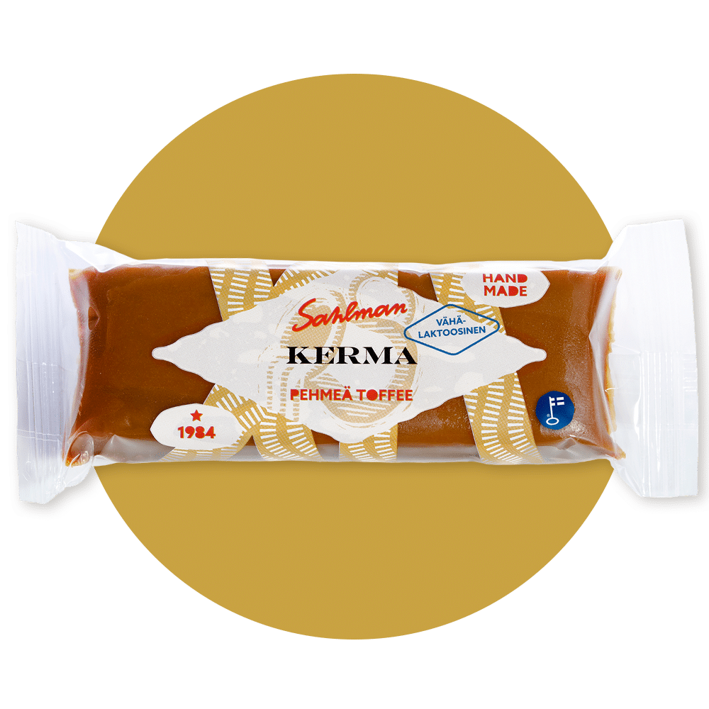 Pehmeät, suussasulavat ja hampaisiin tarttumattomat Sahlman toffeet on valmistettu samalla toimivalla reseptillä jo vuodesta 1984. Toffeet ovat gluteenittomia ja tuotteilla on ylpeänä Avainlippu-merkki – aitoa kotimaista laatua.