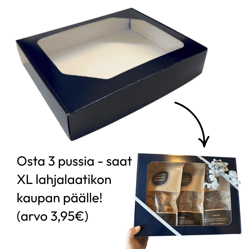 🎁 ETU: Osta 3 pussia, saat XL lahjalaatikon kaupan päälle! (arvo 3,95€)