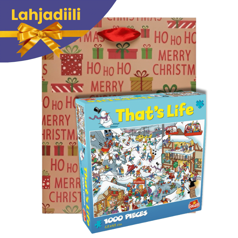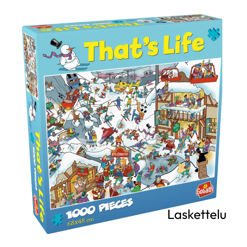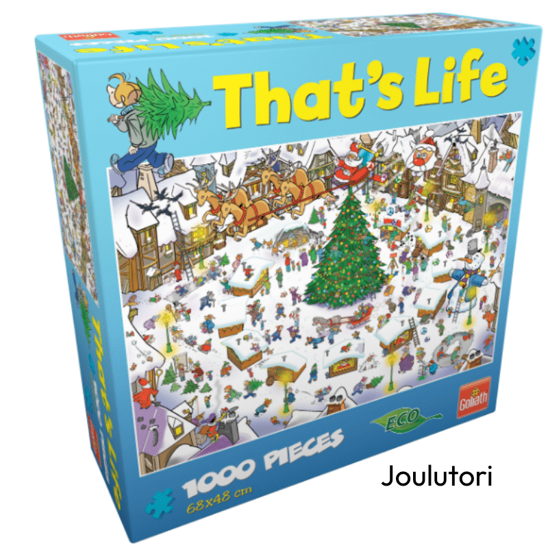 That’s life jouluaiheisessa palapelissä on runsaasti yksityiskohtia ja tapahtumia, joita on hauska tutkia palapelin kokoamisen lomassa. 1000 palaa. Koko 68 x 48 cm.