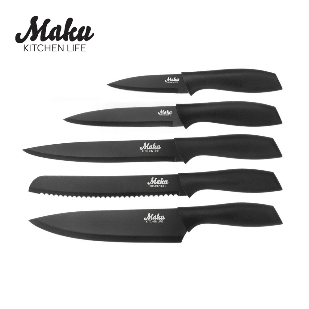 Tyylikkyyttä ja tarkkuutta keittiöösi! Tämä Maku Kitchen Life -veitsisetti on valmistettu korkealaatuisesta, mustaksi pinnoitetusta ruostumattomasta teräksestä, joka yhdistää modernin ulkonäön ja erinomaisen kestävyyden.