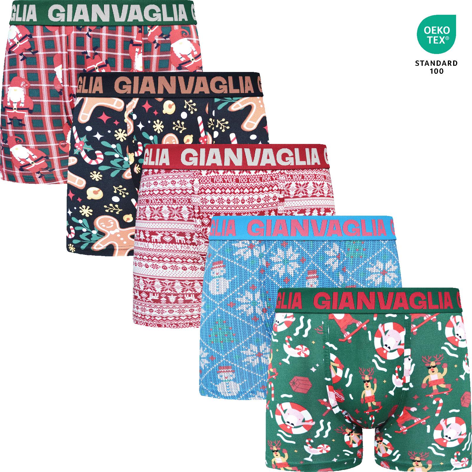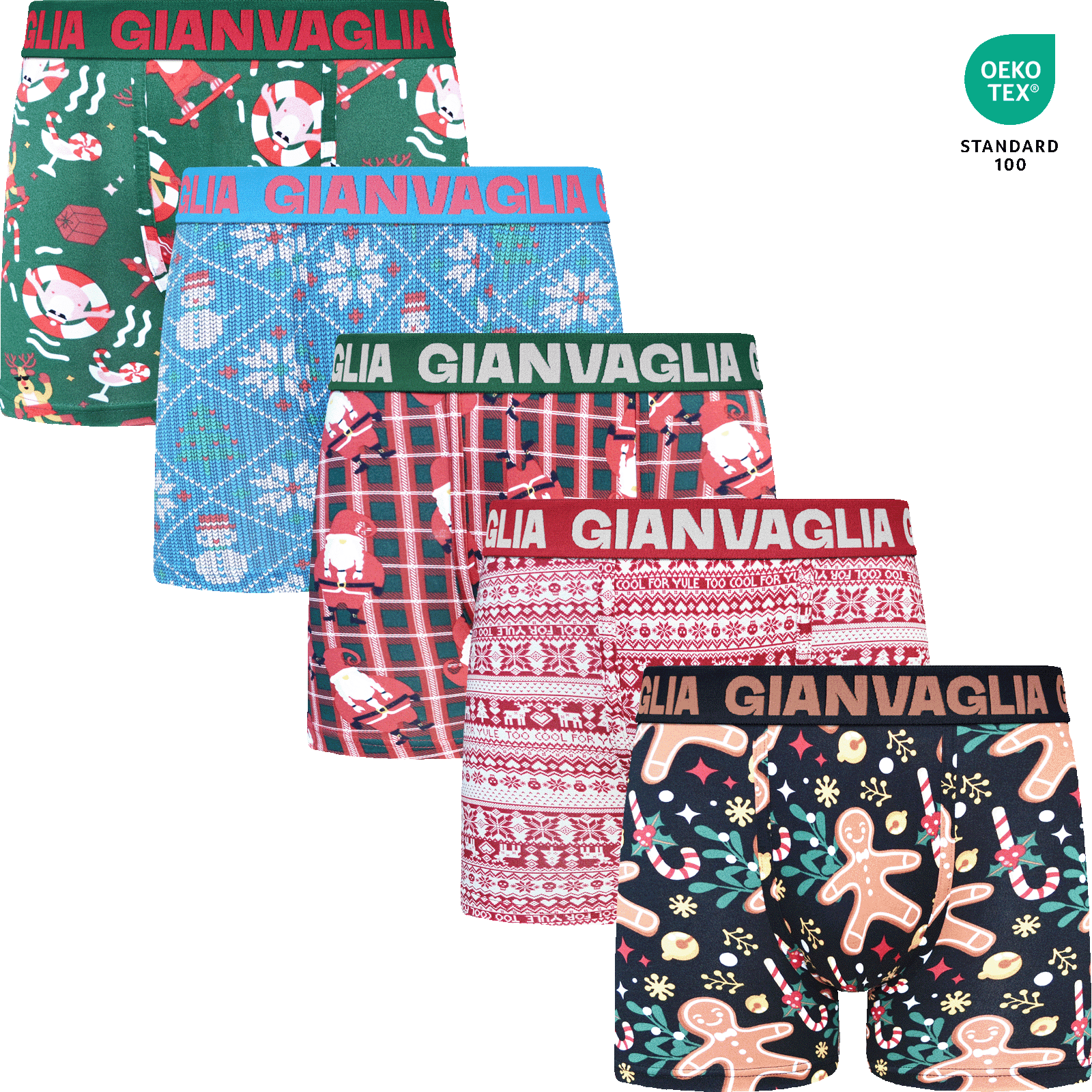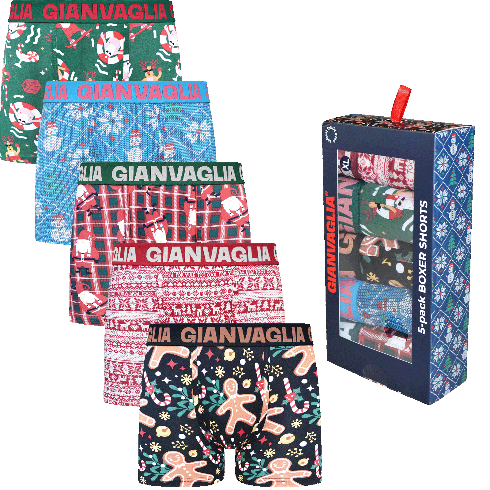 Tuo joulumieli myös alusvaatekaappiin! 🎅 Italialaisen Gianvaglia -tuotemerkin laadukkaat miesten bokserit hurmaavat viidellä erilaisella joulukuosilla – täydellinen yhdistelmä tyyliä, mukavuutta ja huumoria.
