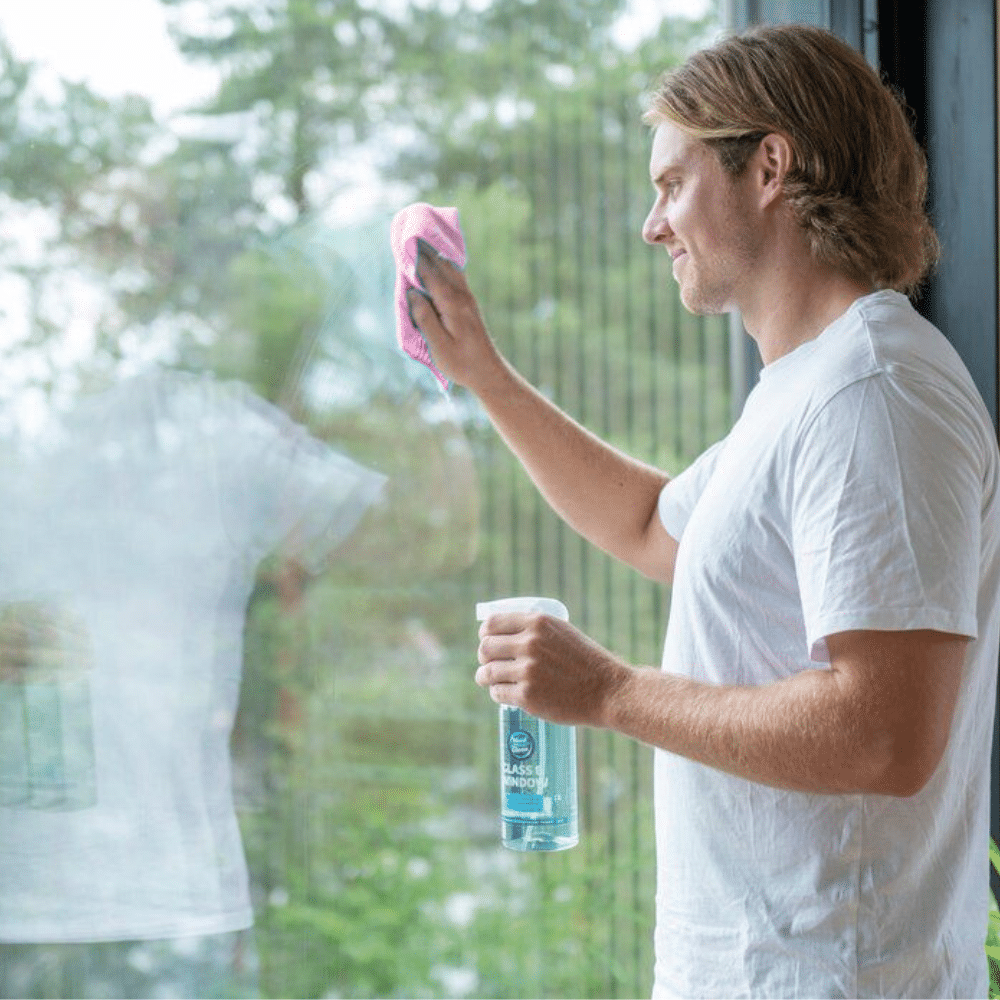 Suomessa valmistettu lasinpuhdistussuihke sopii erinomaisesti ikkunoille, peileille ja muille lasipinnoille. Se sisältää huurteenestoainetta, joten se toimii loistavasti myös kylpyhuoneen peileissä.