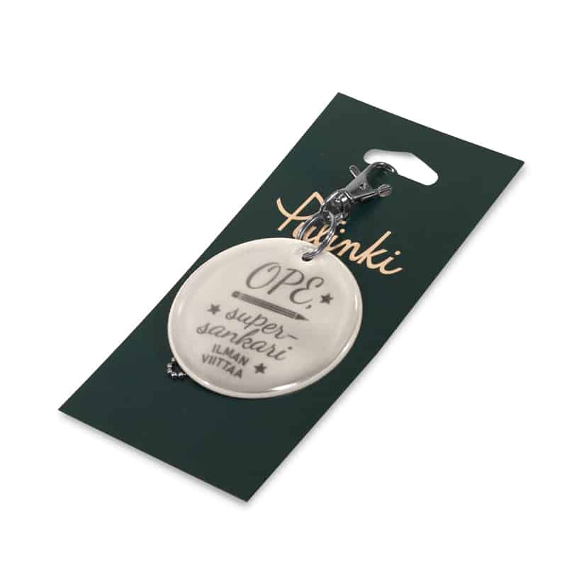 Opettajat ovat supersankareita ilman viittaa! Tämä suomalaista designia edustava heijastin on mainio ja käytännöllinen kiitoslahja elämäsi tärkeälle opelle. Sisältää papukaijalukon ja palloketjun.