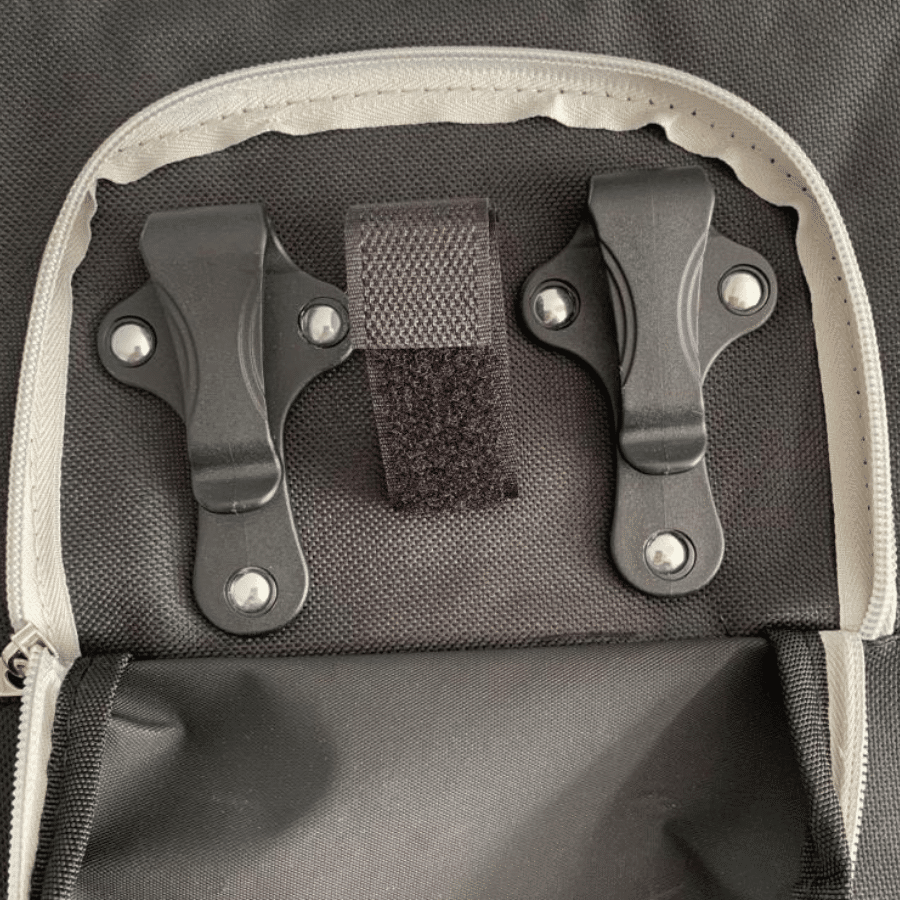 - Kiinnittyy pyörän tavaratelineeseen kahdella koukulla ja tarranauhalla