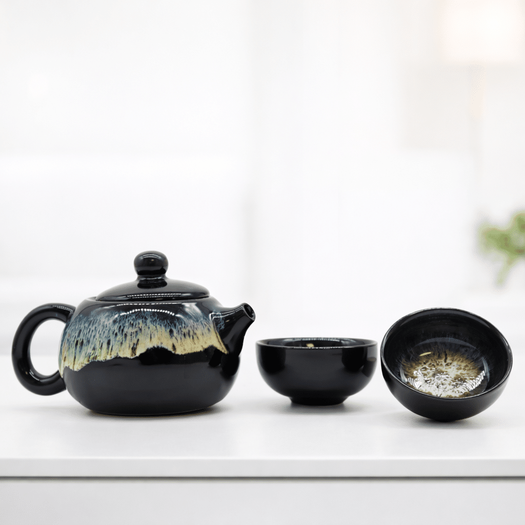 Nauti aidosta kiinalaisen teeseremonian tunnelmasta kotonasi. Taiteellinen pieni taidelasite teekannusetti kahdelle — aaltomainen kuviointi tekee jokaisesta setistä ainutlaatuisen.